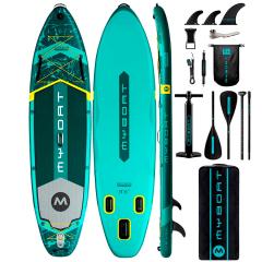 Надувная доска MYBOAT BASS HUNTER GREEN в интересной цветовой гамме и аксессуарами: с нетонущим двойным веслом, комплектом плавников, насосом и водонепроницаемым чехлом для защиты телефона, - подходит для профессиональных спортсменов, любителей морского спорта, новичков, пожилых людей и молодежи.